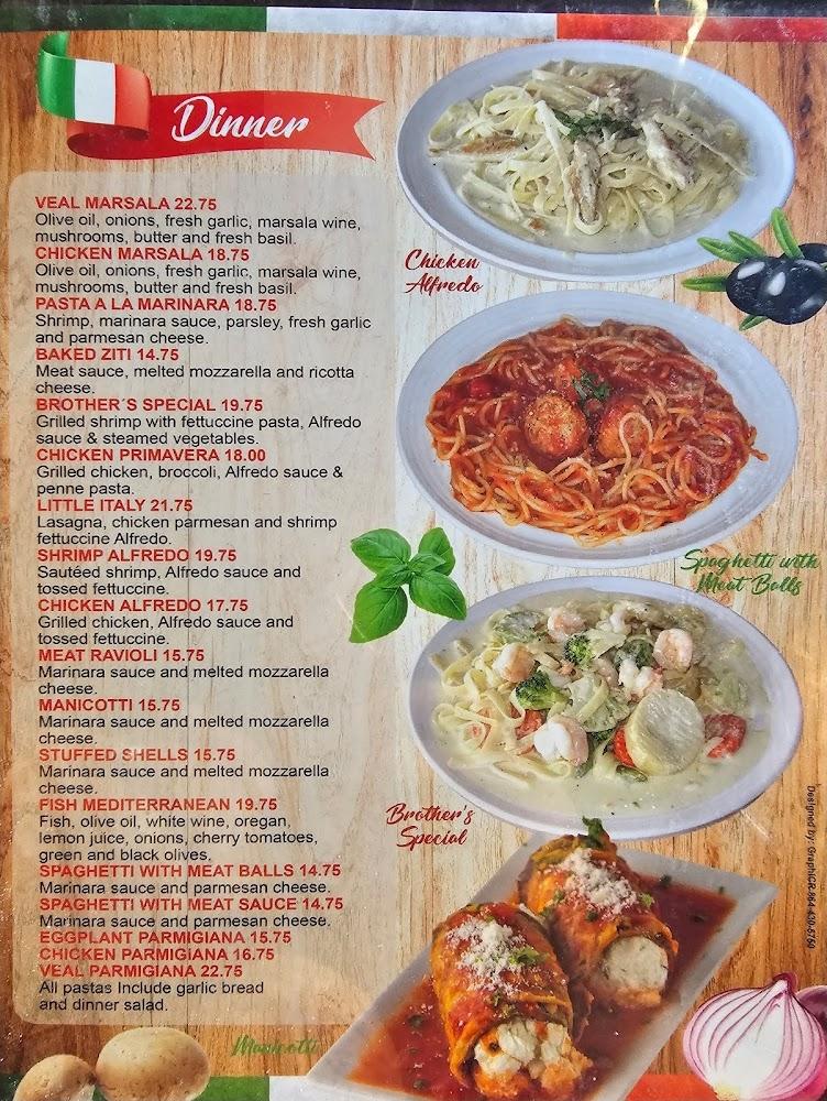 Brothers Italian Cuisine offers a rich and diverse menu filled with Italian staples. Pizzas come loaded with fresh toppings, while classic pastas shine with their homemade sauces. Popular dishes include spaghetti, baked ziti, and veal marsala, all made from high-quality ingredients that promise delightful flavors.